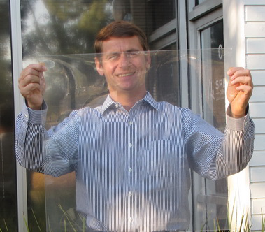 Lucent Optics’ Daylighting Film is a low-cost window film applied to the inside window panes of commercial and residential building facades. The film brightens the space by harvesting natural daylight and distributing it through the room interior without glare. Not only it creates more comfortable environment for building occupants, but it also allows for turning electric lights off thus saving electric energy and reducing AC load.